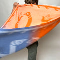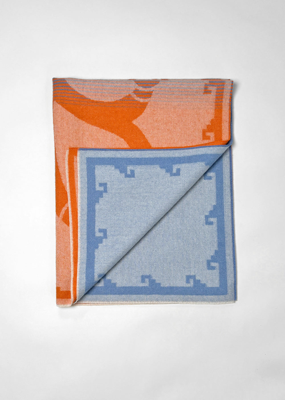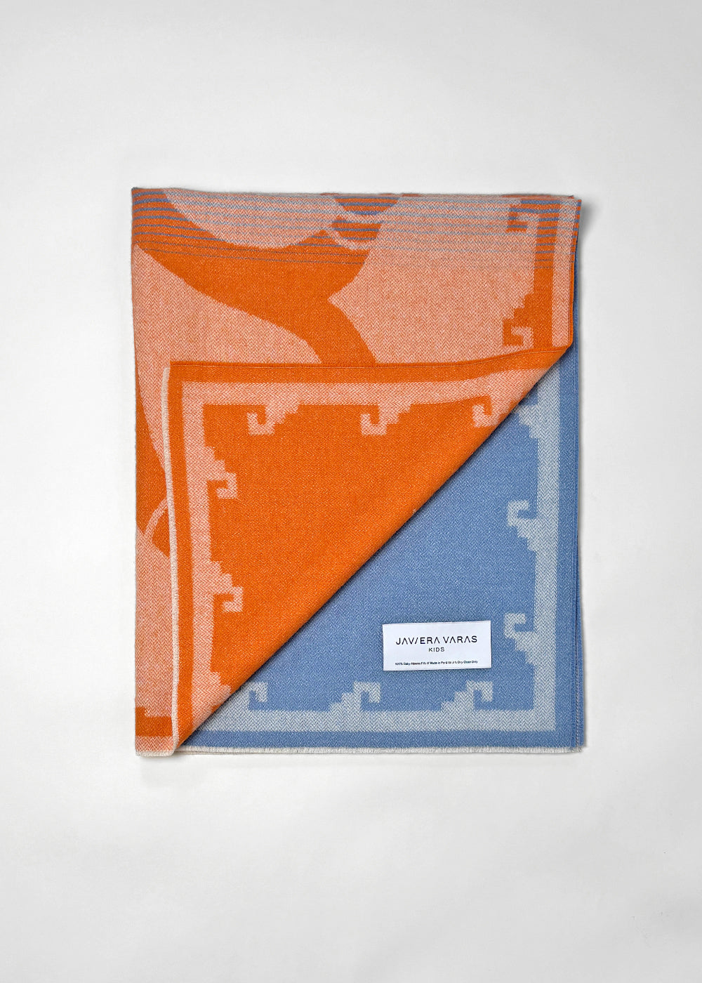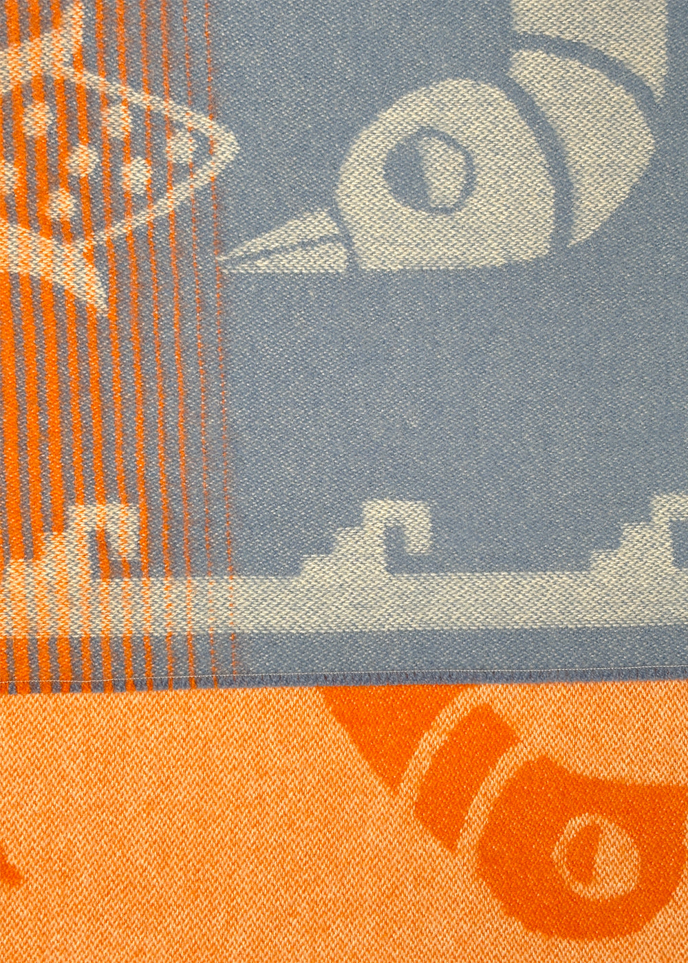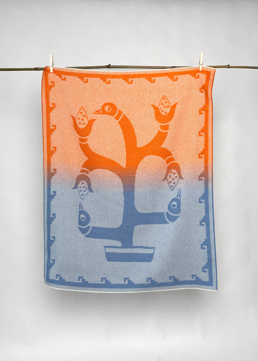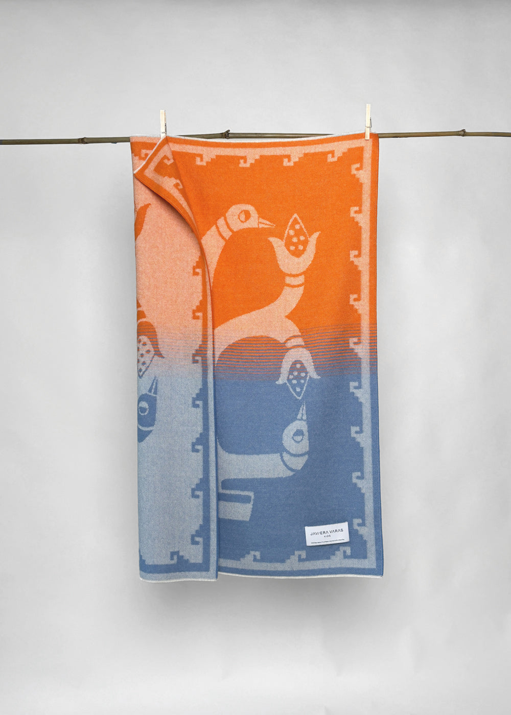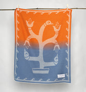 “Bird and Corn” Baby Alpaca Blanket - Orange / Blue