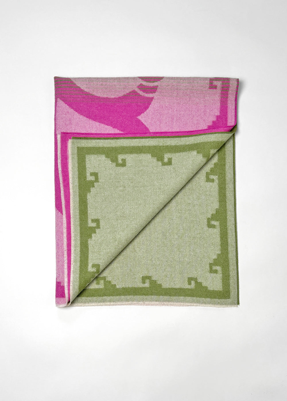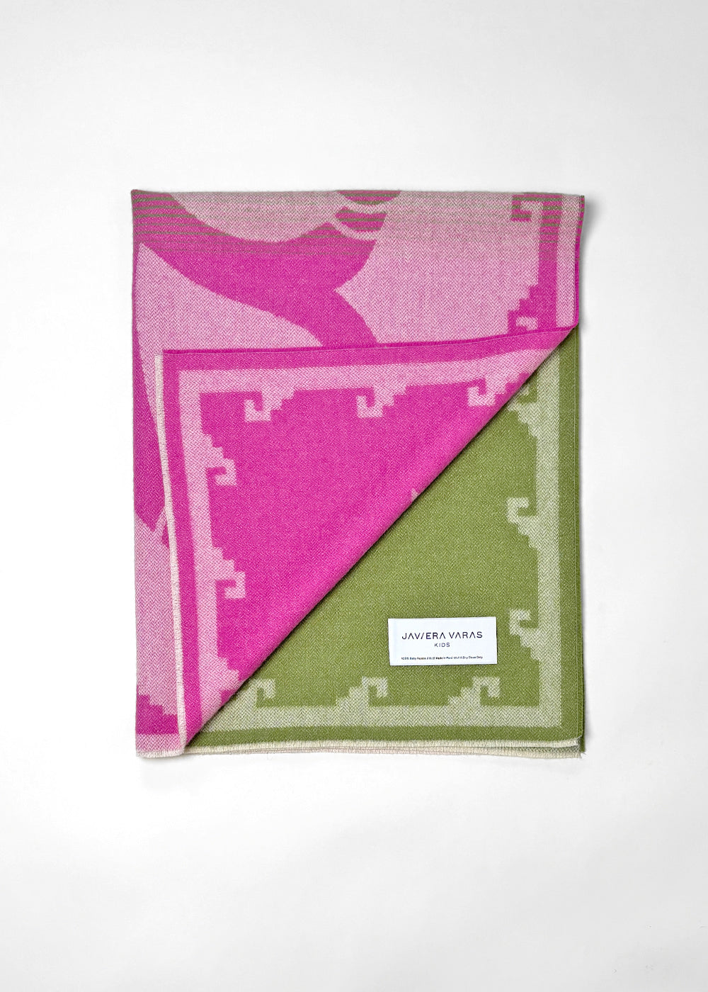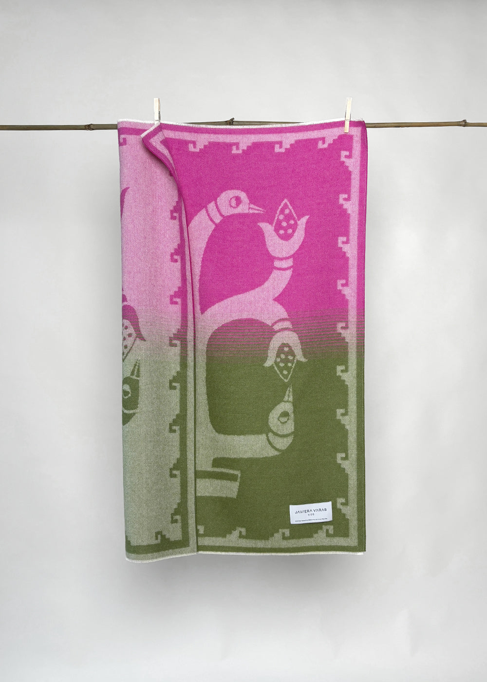 “Bird and Corn” Baby Alpaca Blanket - Magenta / Green