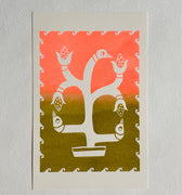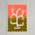 Each 5" x 7" print showcases the distinctive layered color technique that defines riso aesthetics—bold hues with subtle registration shifts that add character and depth.